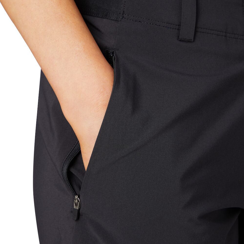 Die McKinley Sala W ist eine klassische Damen-Bermudashorts. Sie bestehen aus einem strapazierfähigen, leicht dehnbaren synthetischen Material, das Feuchtigkeit aufnimmt und schnell trocknet. Sie verfügen über zwei Seitentaschen, in denen Sie verschiedene Kleinigkeiten verstauen können. Sie bieten auch reflektierende Elemente, um die Sicherheit bei schlechten Lichtverhältnissen zu erhöhen.
