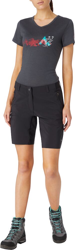 Die McKinley Sala W ist eine klassische Damen-Bermudashorts. Sie bestehen aus einem strapazierfähigen, leicht dehnbaren synthetischen Material, das Feuchtigkeit aufnimmt und schnell trocknet. Sie verfügen über zwei Seitentaschen, in denen Sie verschiedene Kleinigkeiten verstauen können. Sie bieten auch reflektierende Elemente, um die Sicherheit bei schlechten Lichtverhältnissen zu erhöhen.
